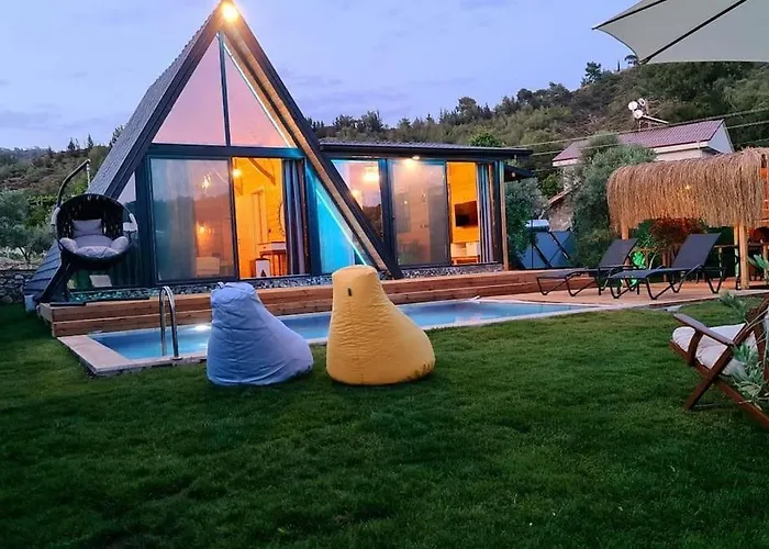 Nestled in the serene landscapes of Fethiye, Villa Zeytin Havuzlu Jakuzili offers a luxurious retreat just 50 km from Dalaman Airport. This elegant villa harmoniously blends traditional Turkish architecture with modern amenities, providing guests with an idyllic setting for relaxation and adventure. Surrounded by breathtaking natural beauty, the villa serves as an ideal haven for families, couples, and solo travelers alike.